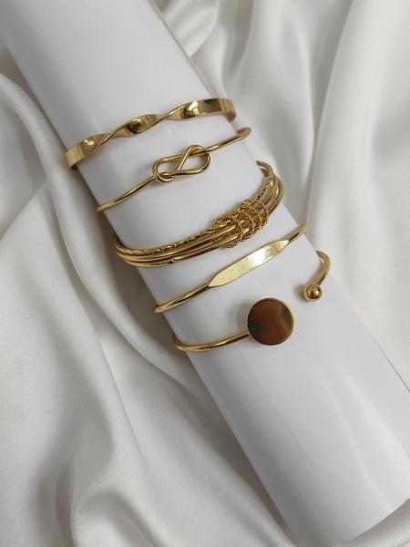 Stack up the shine! This 5-piece gold pleated bracelet set brings layered elegance and a chic, modern vibe to every outfit.