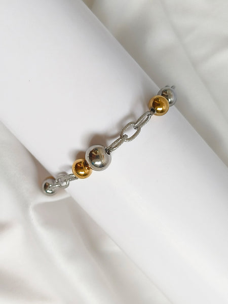 Add a touch of effortless shine with this two-tone silver & gold beaded chain bracelet — versatile, chic, and perfect for stacking or wearing solo.