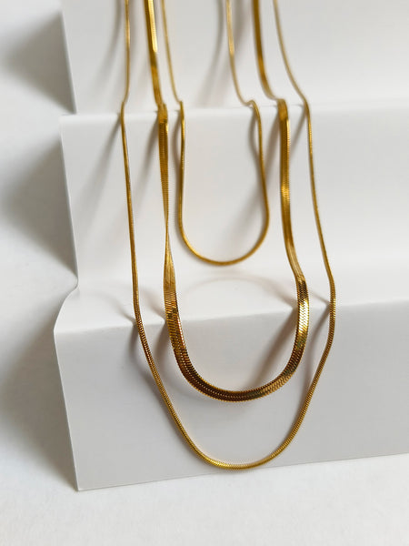 Shine in layers with our Celestia Trio Necklace, a stunning three-tier gold piece designed to catch the light from every angle. Each delicate chain features a mix of sleek links and subtle shimmer, creating a perfectly balanced, celestial-inspired look. Whether you’re dressing up for a night out or adding polish to your everyday outfit, this layered beauty brings effortless elegance to any style.