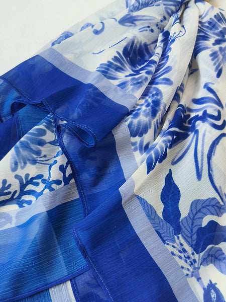 White block print scarf