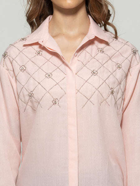 Pink paisley print cuffed sleeves button down party wrap shirt with belt